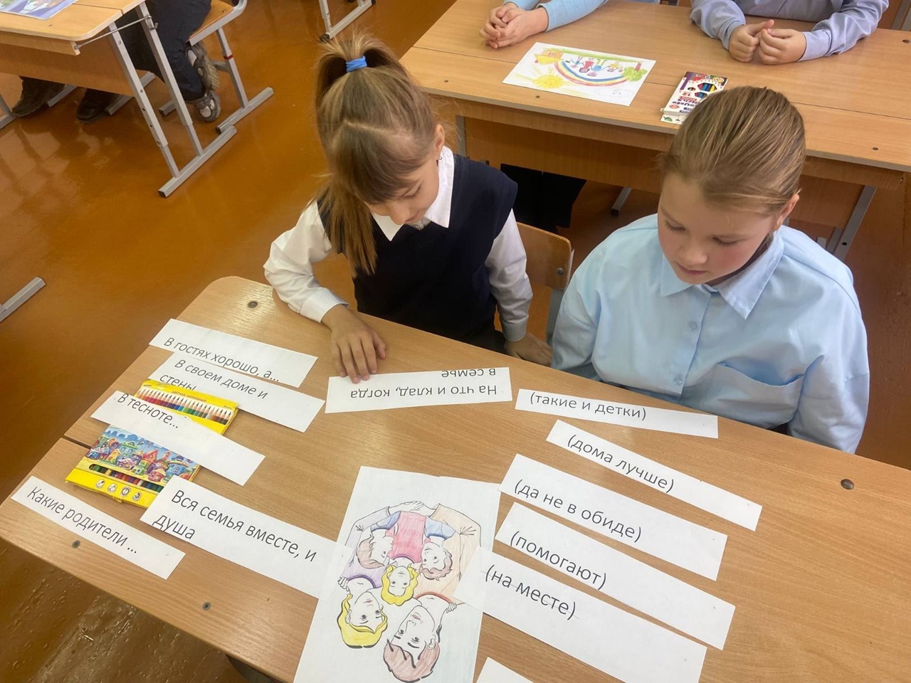 25 октября в рамках шестого школьного дня для учащихся 2-4 классов прошло мероприятие "Моя семья-моя радость".Цель данного мероприятия – пропаганда здоровой семьи и нравственных семейных ценностей. Учащиеся рассуждали о том, что такое дом, семья, какая должна быть атмосфера в доме, где живёт счастливая семья. Дети с удовольствием принимали участие в играх-тренингах «Строим дом», «Солнышко для счастливой семьи», «Правила моей семьи».