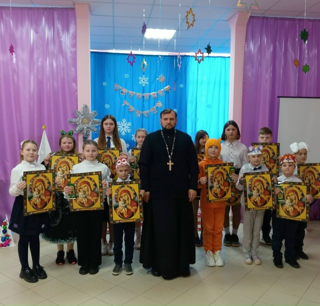 Настаяцель Храма Мікалая Цудатворца, айцец Леанід (Сенчанка) павіншаваў вучняў і работнікаў установы адукацыі са святам і ўручыў падарункі.